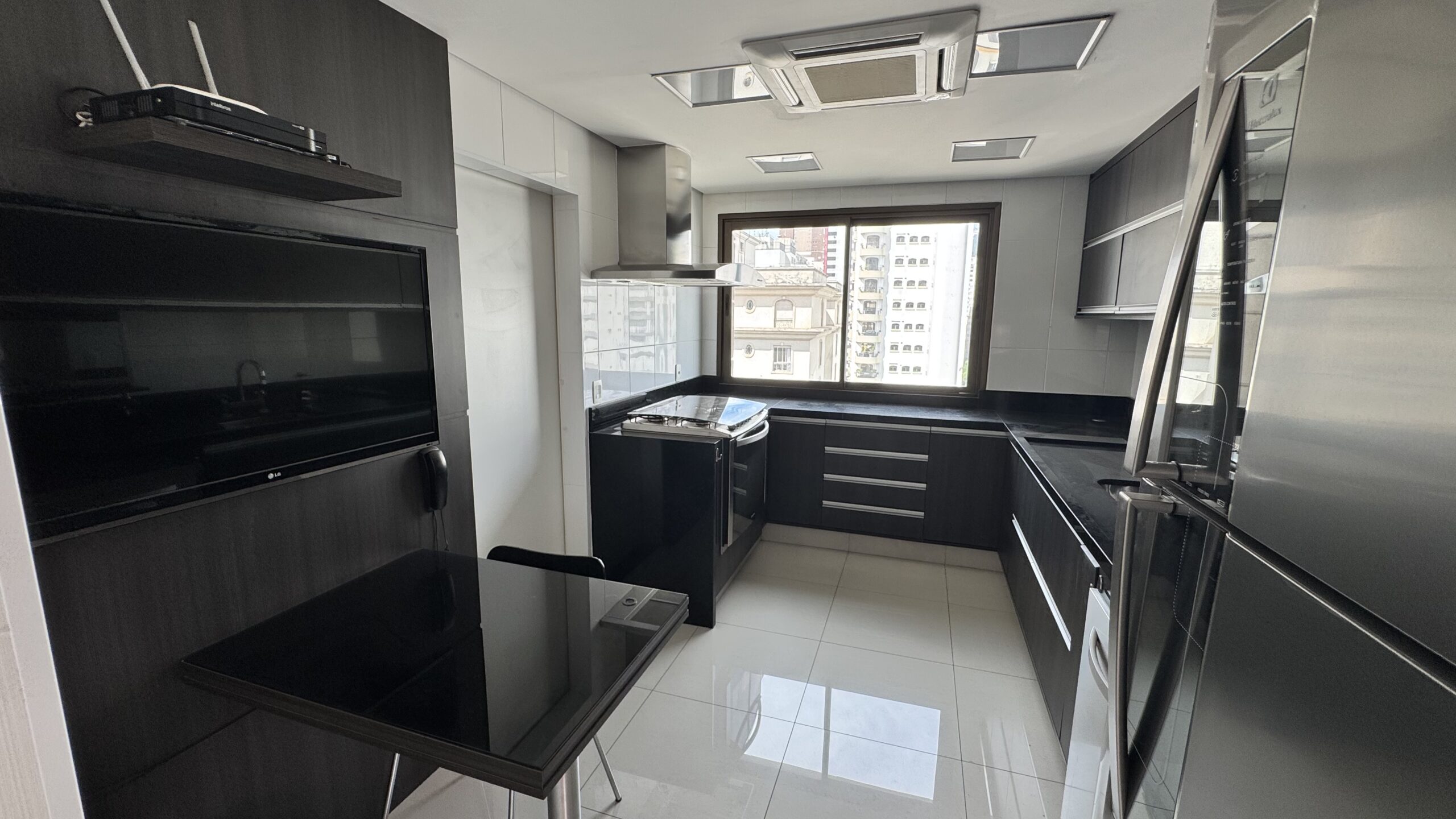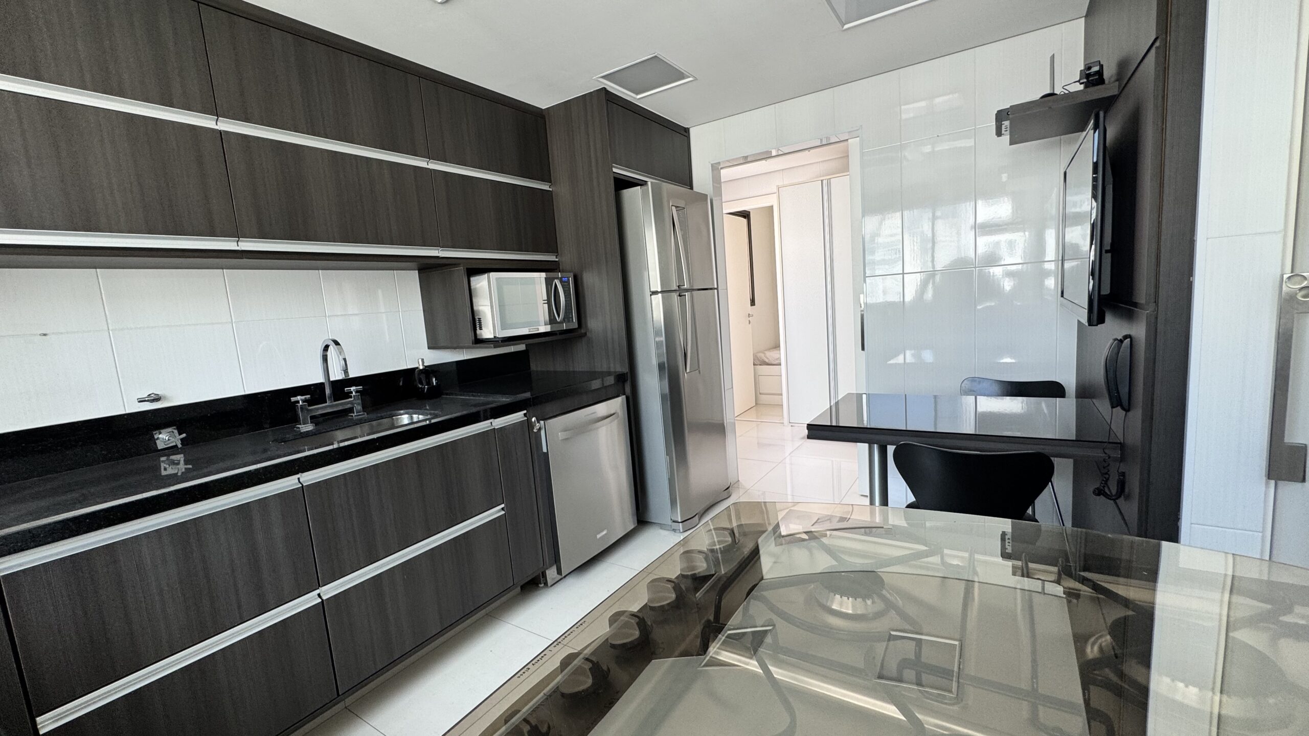 Armários no quarto, armários na cozinha, móveis planejados sob medida, walk-in closet na suíte principal, cama com painéis planejados, guarda-roupa, piscina no condomínio, ar-condicionado quente e frio em todos os ambientes, elevadores sociais privativos, elevador de serviço, depósito privativo, sistema de alarme com câmeras, iluminação em LED, sala de ginástica privativa.